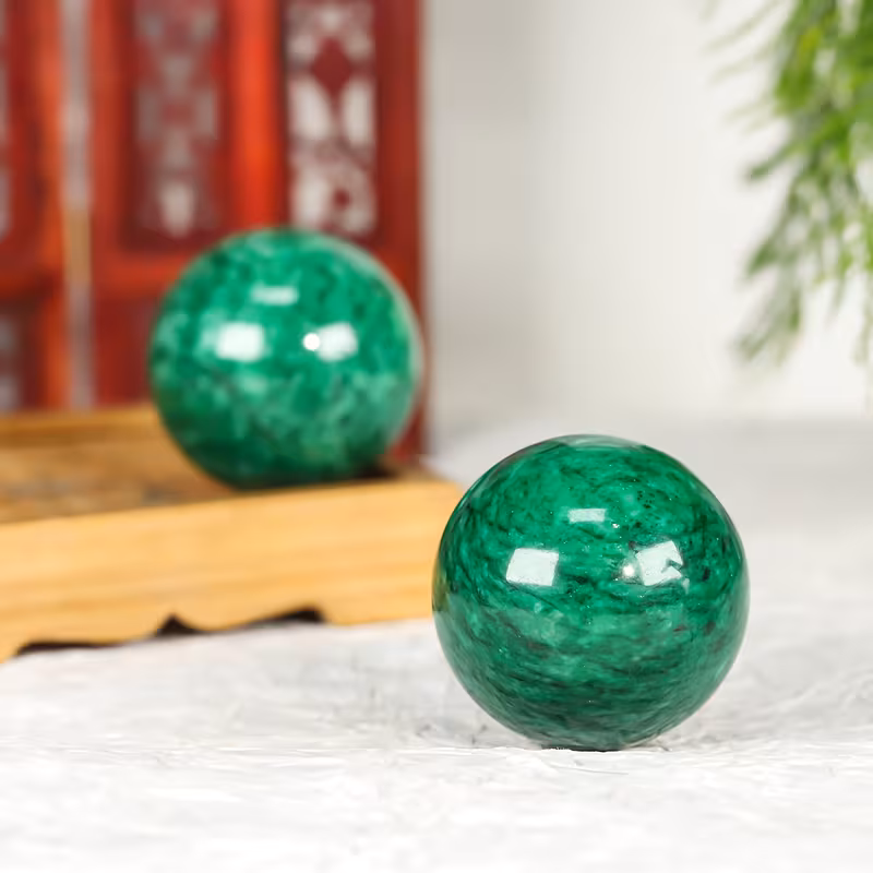 כדור ג'ספר ירוק על מעמד עץ מסוגנן משקל: כ 170 גרם