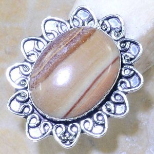 טבעת כסף משובצת אבן ג'ספר גווני חום מידה: 7.75